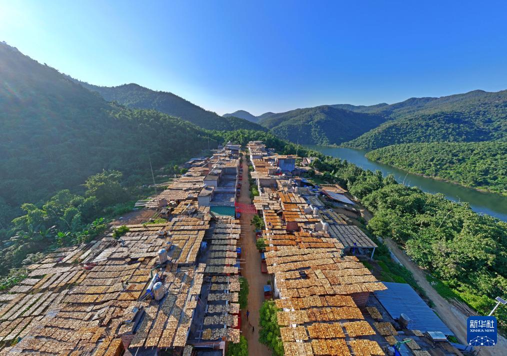 10月31日,村民在广西百色市田林县六隆镇洞弄村晾晒八渡笋(无人机照片)。(新华社记者 周华 摄)