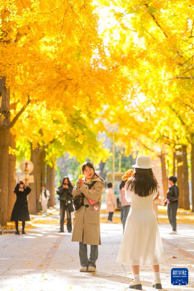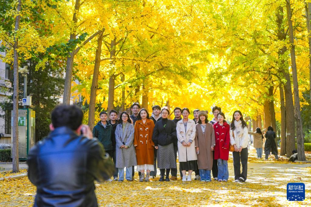 11月4日,人们在北京林业大学校园内拍照。(新华社记者 陈晔华 摄)
