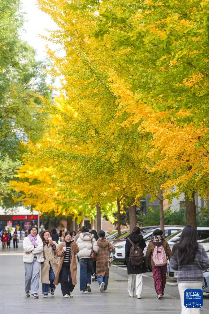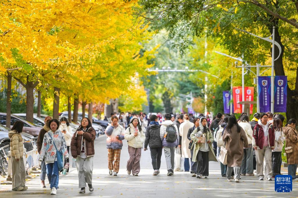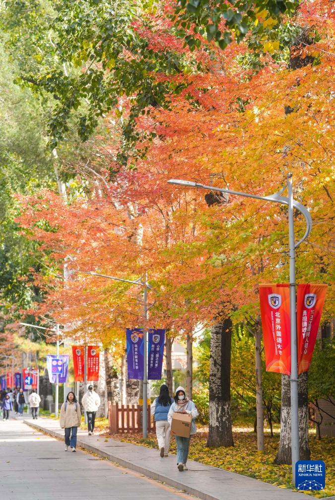 11月4日,人们走在北京外国语大学校园道路上。(新华社记者 陈晔华 摄)