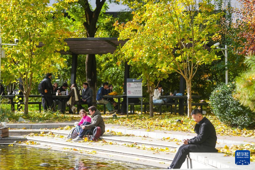 11月4日,人们在北京外国语大学校园一角休憩。(新华社记者 陈晔华 摄)