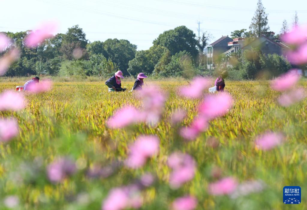 11月6日,在浙江省嘉兴市南湖区凤桥镇星火村,农民在晚稻田间进行水稻选种。(新华社发 金鹏 摄)