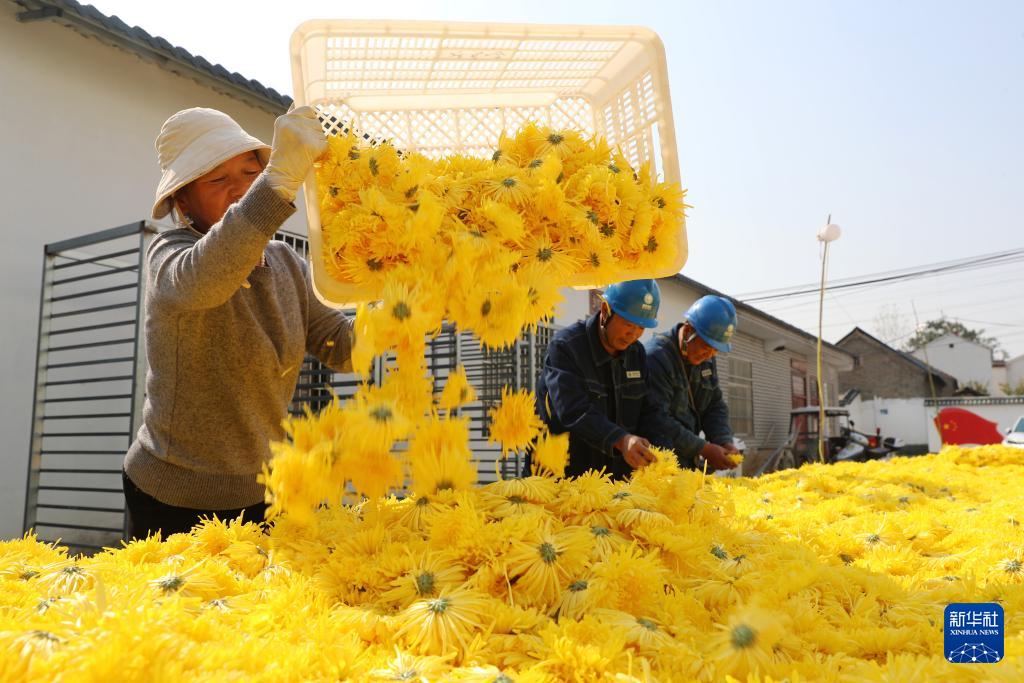 11月6日,河南省许昌市鄢陵县张桥镇裴庄村村民在采收金丝皇菊。(新华社发 牛书培 摄)