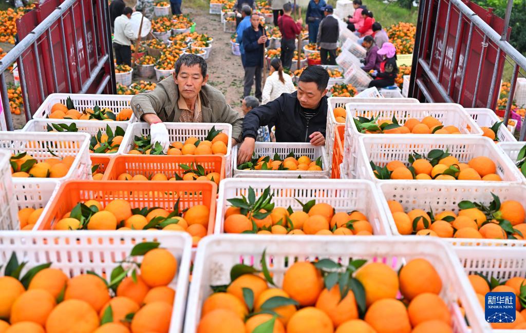11月6日,在四川省眉山市仁寿县虞丞乡反封村,果农在装运柑橘。(新华社发 潘建勇 摄)