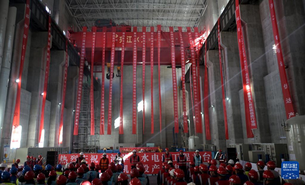 11月8日拍摄的羊曲水电站首台机组投产发电仪式现场。(新华社记者 解统强 摄)