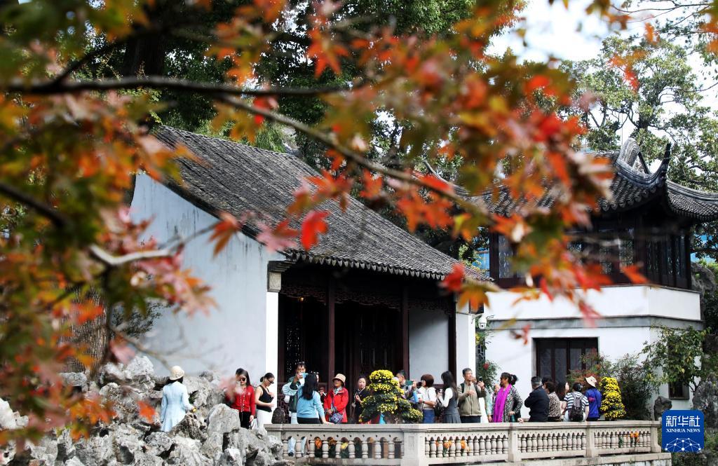 11月14日,游客在江苏苏州狮子林赏景游玩。(新华社发 杭兴微 摄)