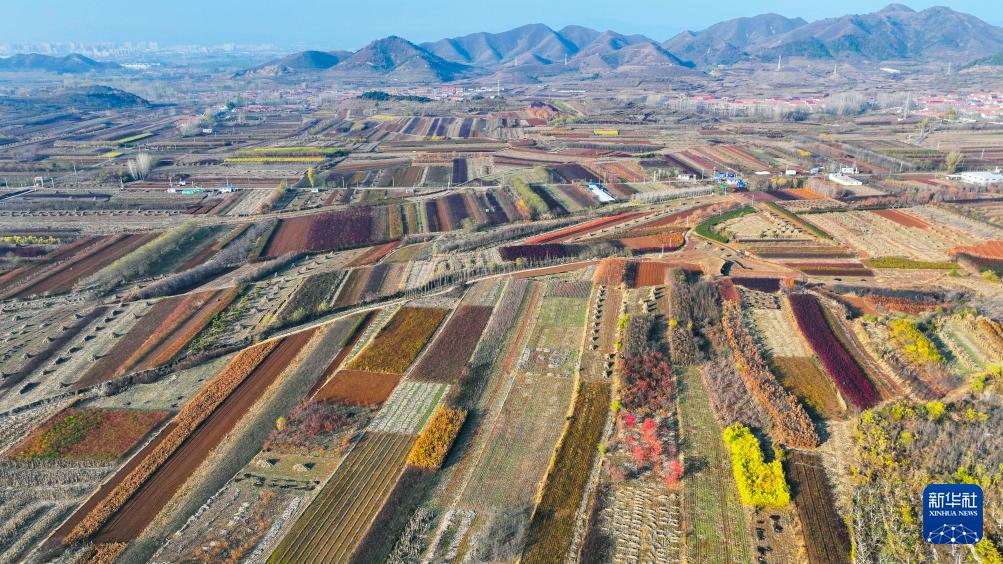 11月14日在河北省遵化市新店子镇拍摄的初冬景色(无人机照片)。(新华社发 刘满仓 摄)