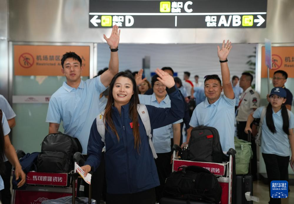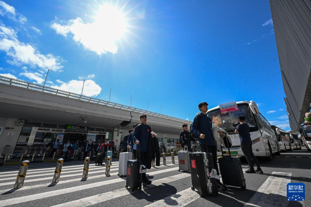 11月18日,天津代表团成员抵达海南三亚。(新华社记者 晋美多吉 摄)