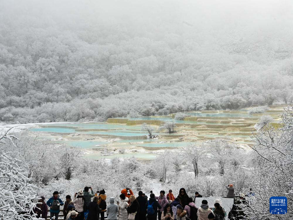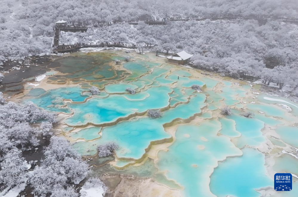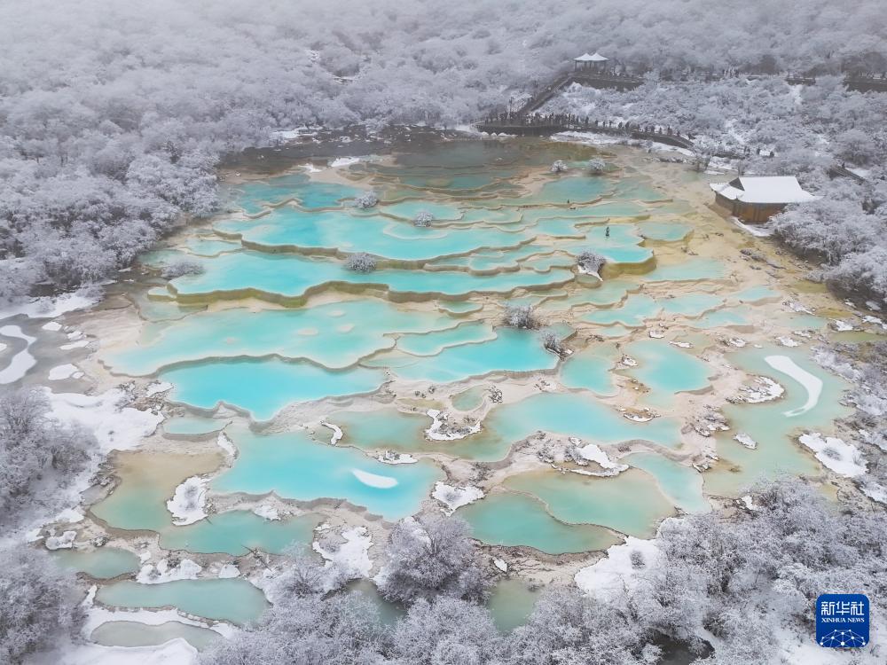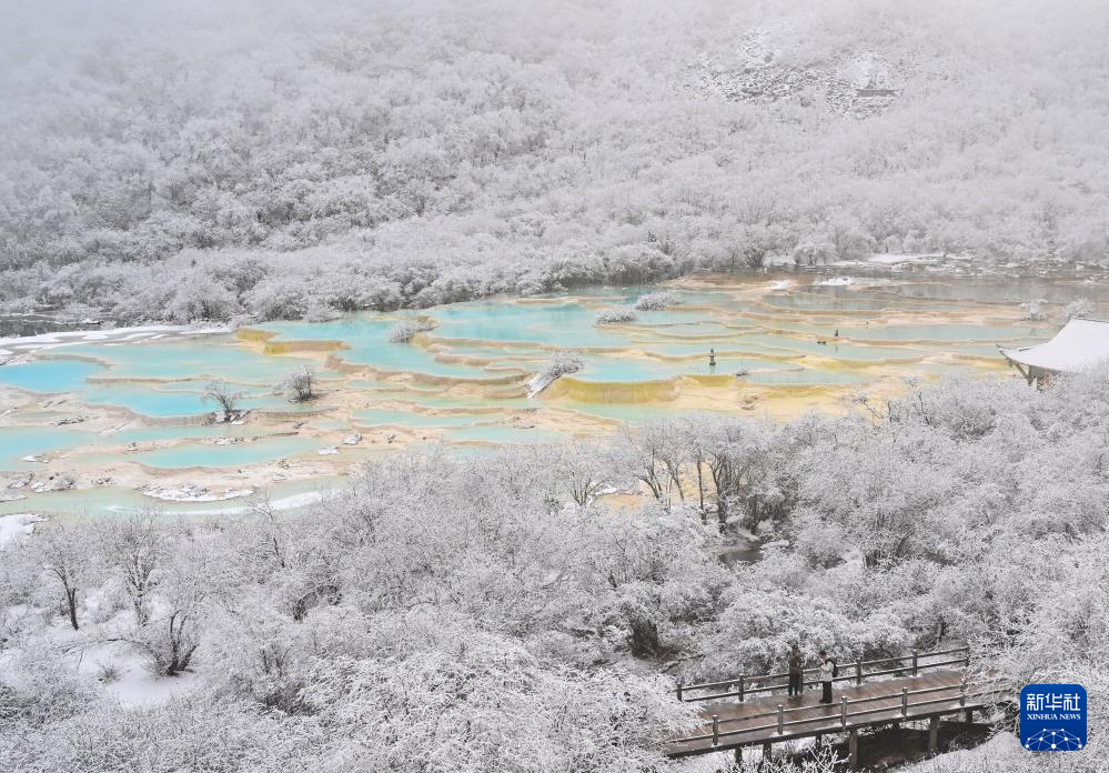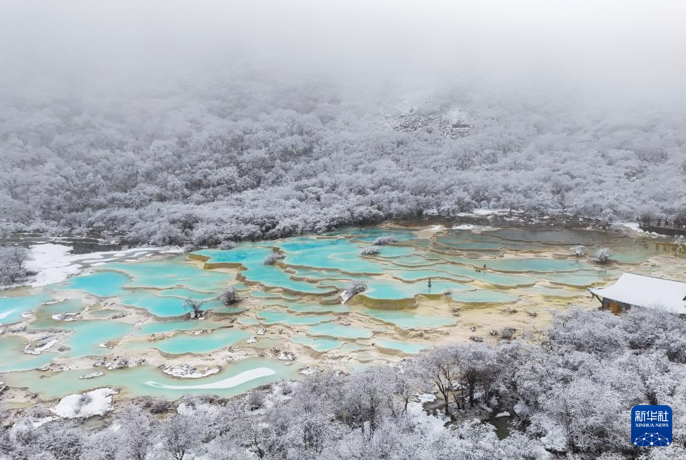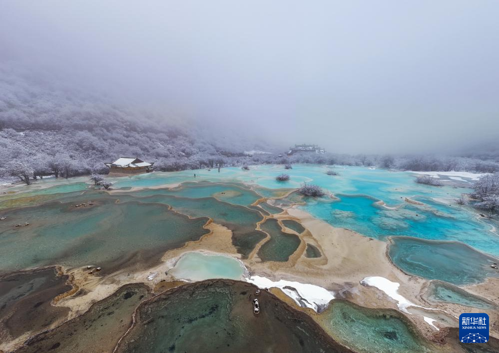11月18日,雪后的四川省阿坝藏族羌族自治州黄龙景区薄雾弥漫,仿佛披上了一层轻纱,如梦如幻。