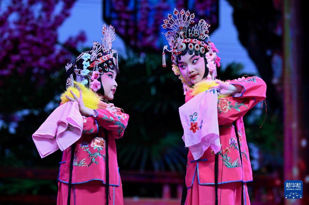 12月1日,小演员在河北省群艺馆表演评剧《花为媒》选段。(新华社发 陈其保 摄)