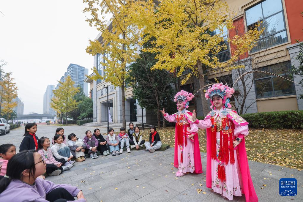 12月3日,诸暨市西湖小学越剧社团的学生演员为同学们演出。(新华社记者 徐昱 摄)