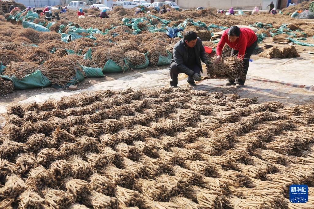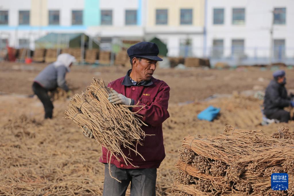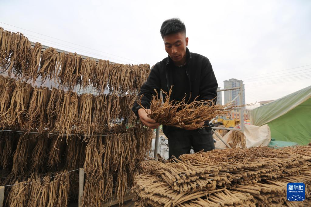 初冬时节,正值中药材晾晒季,甘肃省定西市漳县的药材种植户利用晴好天气分拣、晾晒、交易药材,一派忙碌的丰收景象。近年来,当地陆续建起多个万亩有机中药材生产基地,中药材产业成为农民增收致富、助力乡村振兴的支柱产业。