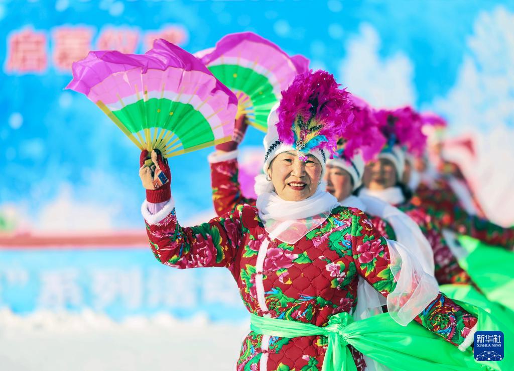 12月4日,参加嘉年华活动的当地群众表演东北秧歌。(新华社发 兰红光 摄)