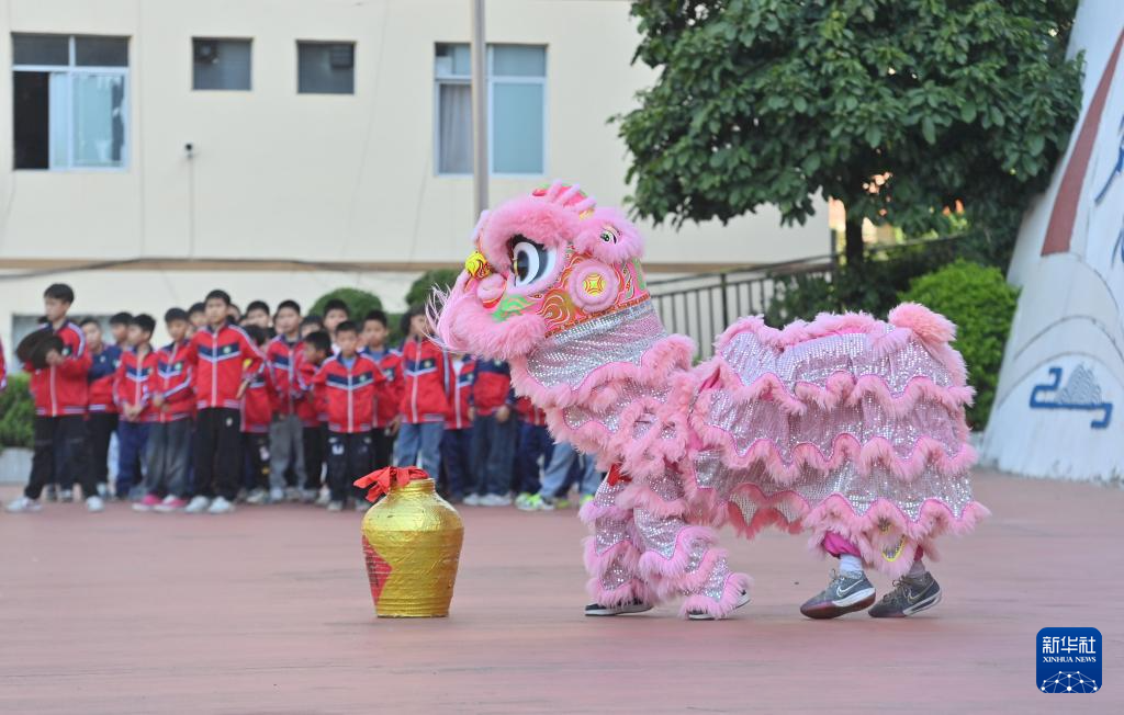 近年来,广西梧州市积极推进狮舞文化进校园,通过兴趣培养、社团活动、训练参赛等方式,引导青少年继承和发扬优秀传统文化。