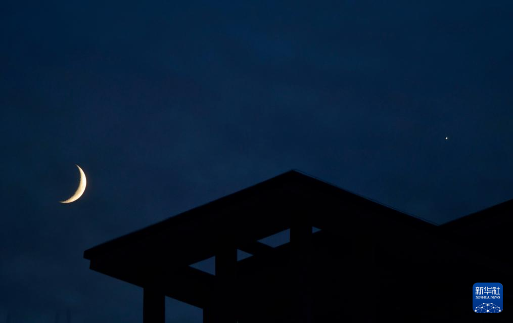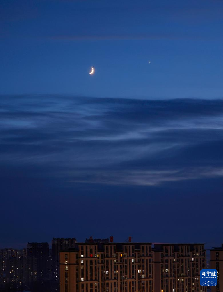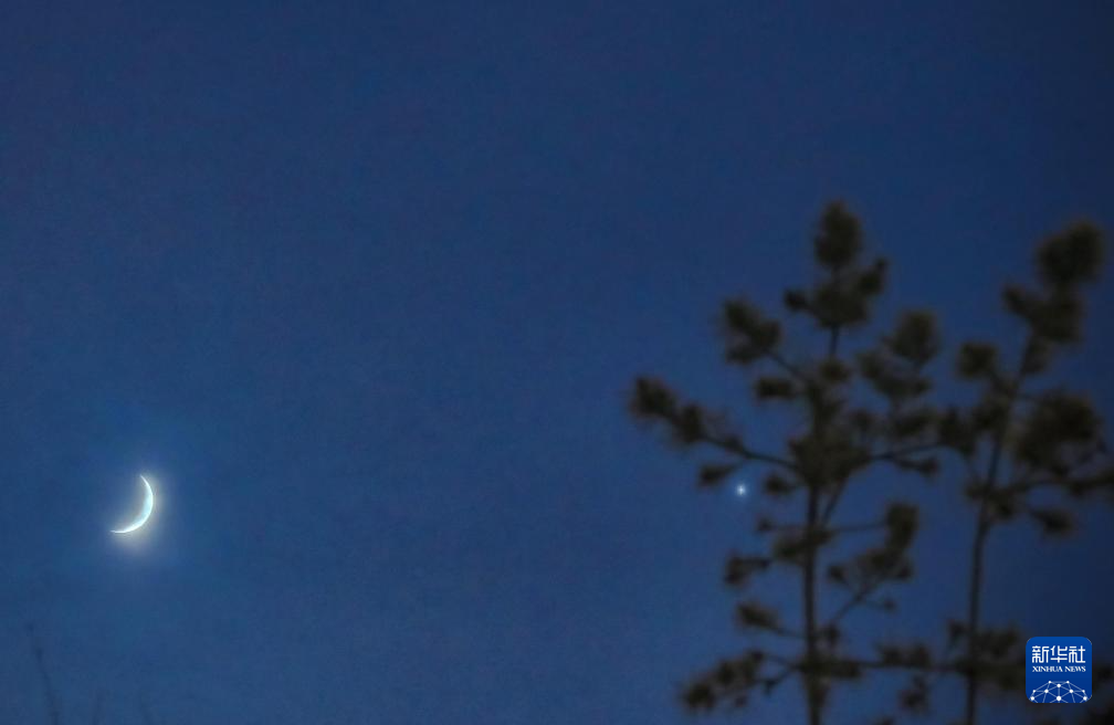 12月5日在黑龙江省北安市拍摄的金星伴月。(新华社发 钱泊羽 摄)