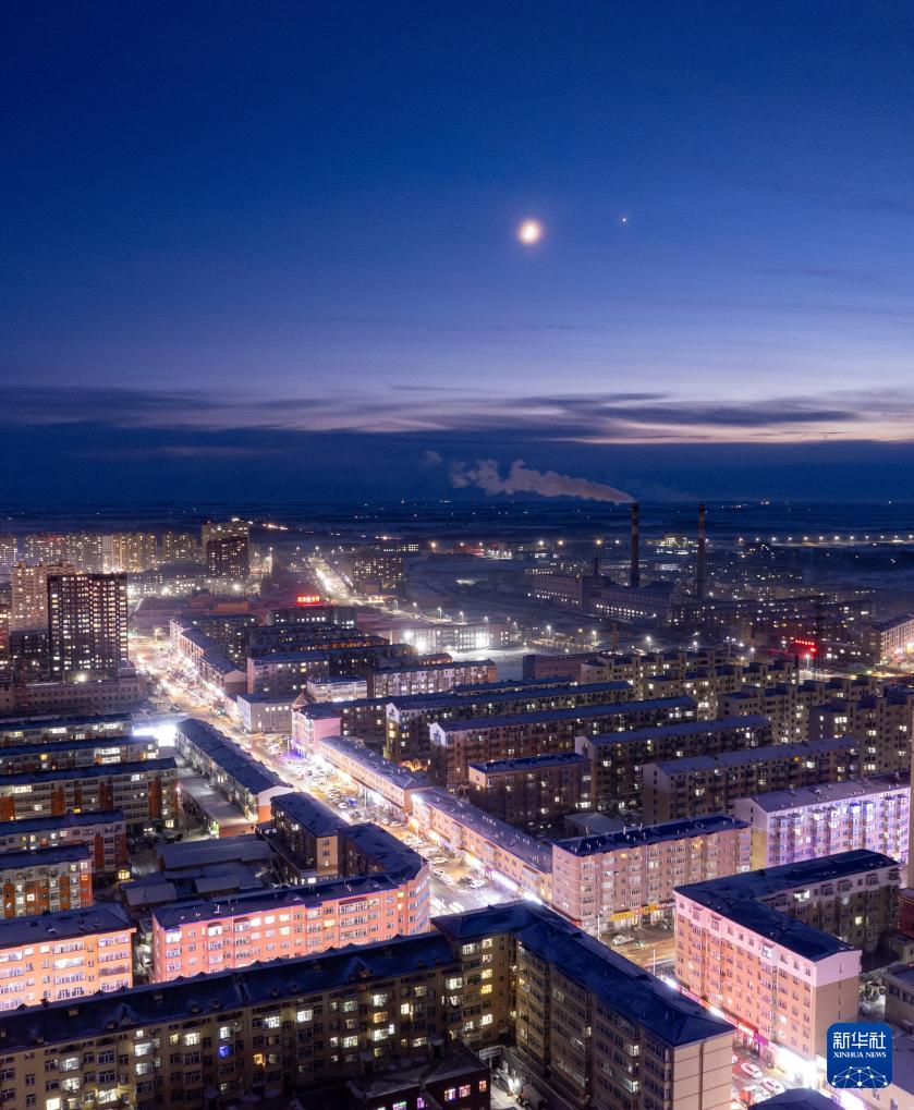 12月5日在黑龙江省大庆市拍摄的金星伴月。(新华社发 马克 摄)