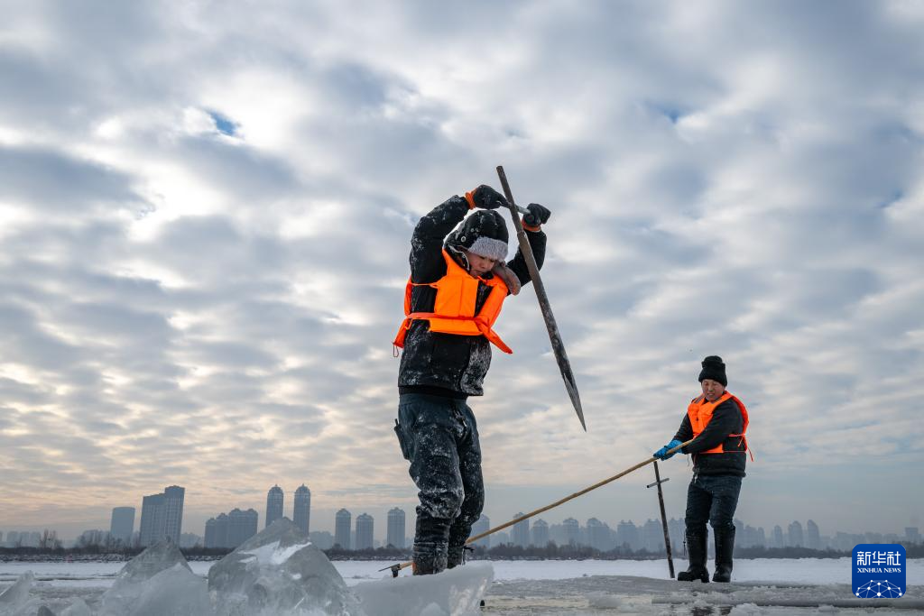眼下,“冰城”哈尔滨采冰工作全面展开,采冰汉子从松花江上采出优质冰料,源源不断地运往冰雪大世界园区等地,用于景观建设。