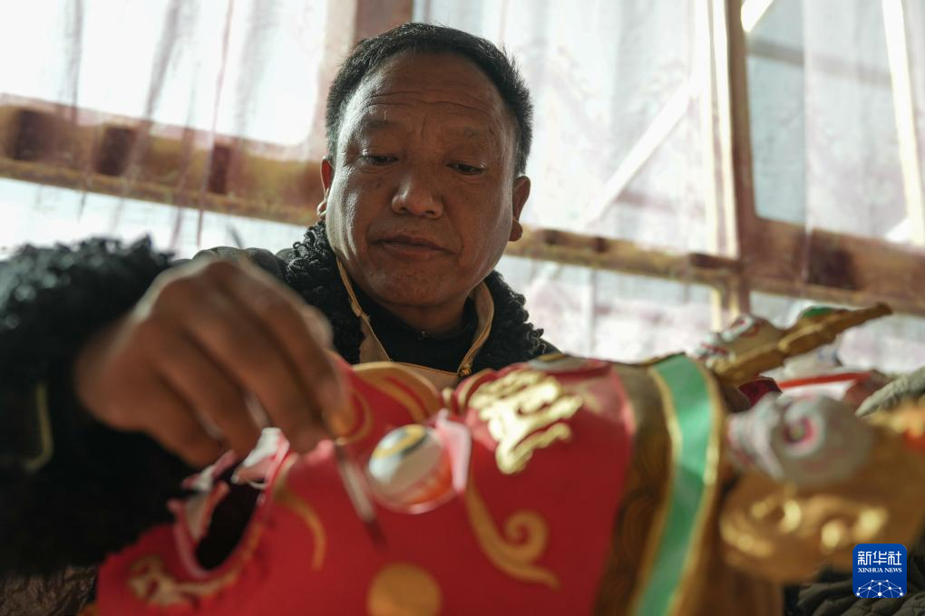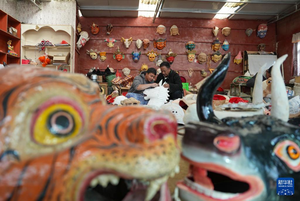 12月9日,西洛在合作社制作西藏传统面具。(新华社记者 晋美多吉 摄)