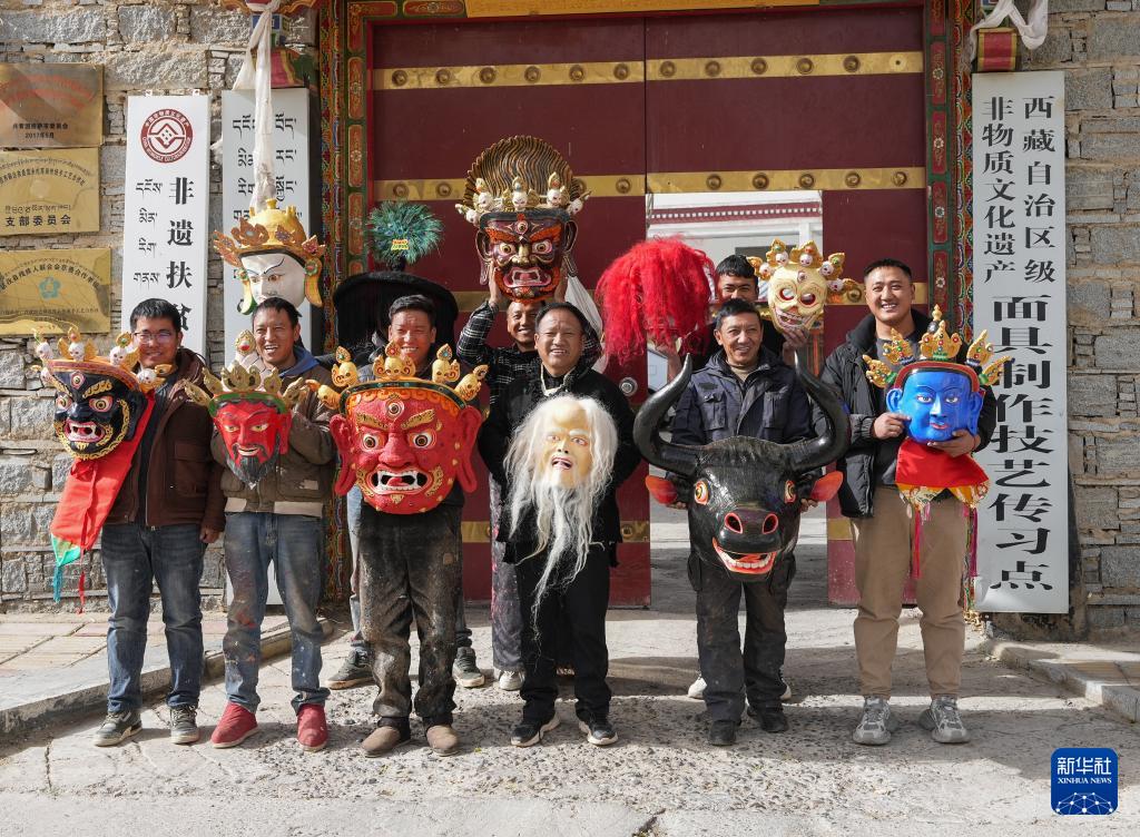 12月9日,面具制作工匠们在合作社门口合影。(新华社记者 晋美多吉 摄)