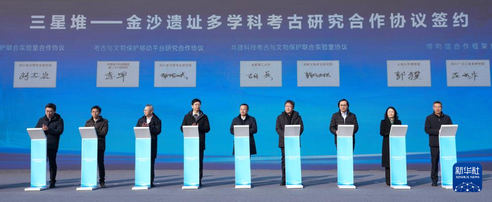 12月16日,考古专家代表进行三星堆—金沙遗址多学科考古研究合作协议签约。(新华社记者 江宏景 摄)