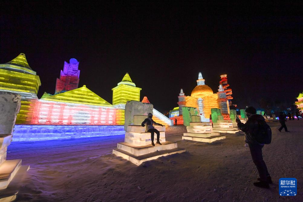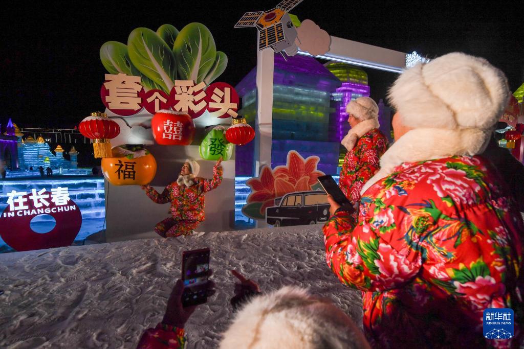 12月17日,游客在长春冰雪新天地游览拍照。(新华社记者 张楠 摄)