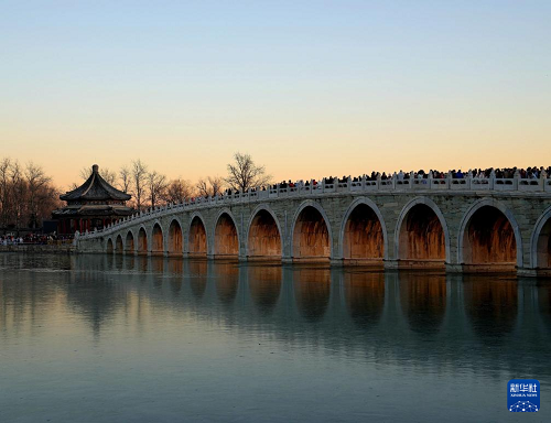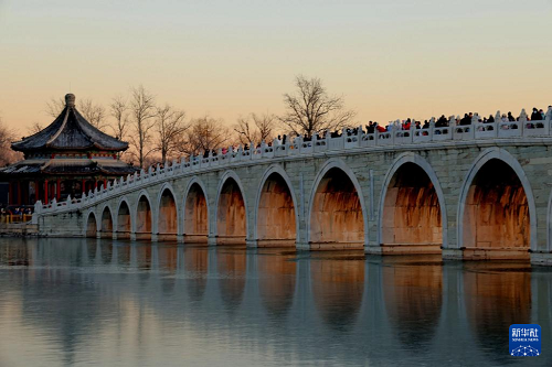每逢冬至前后,北京颐和园十七孔桥便会上演“金光穿洞”的自然奇观。
