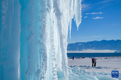 12月23日,游客在赛里木湖边游览。(新华社记者 陈朔 摄)