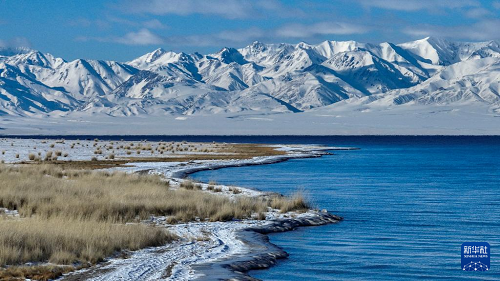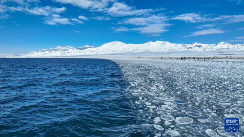 赛里木湖位于新疆博尔塔拉蒙古自治州境内,是新疆海拔最高、面积最大的高山湖泊。冬至后,湖区气温可降至零下20°C左右,湖面结冰,形成独特的“冰馕”景观。湖冰与远山积雪相映,景色壮美,吸引着游客前来欣赏。