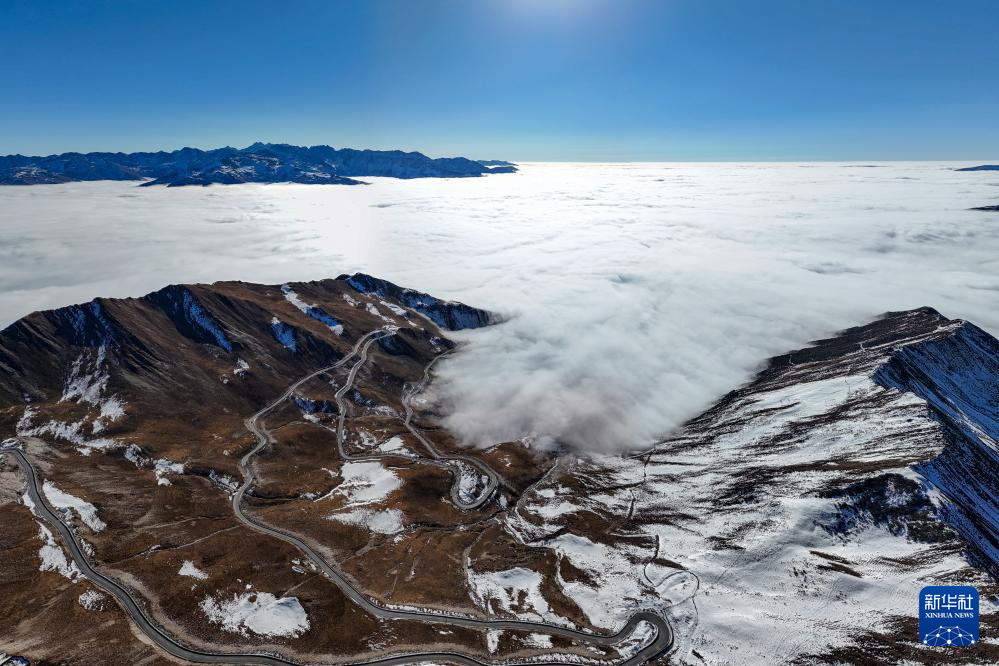 这是12月25日拍摄的四川夹金山云海(无人机照片)。(新华社记者 王曦 摄)