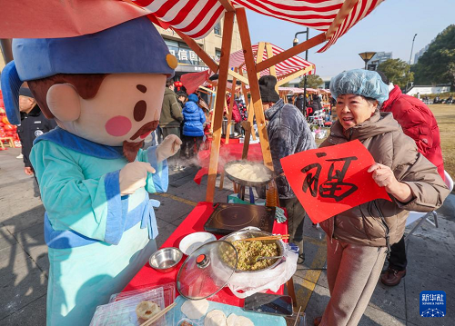 12月31日,“宋韵思潮 寻迹匠心”杭州非遗年货节在杭州市上城区望江街道日信国际广场开市,现场设置非遗、文创、游艺、民俗、群艺五大板块,汇集非遗项目展示体验,穿插民俗文艺表演,同时推出各地年节美食品尝展销,营造杭州特色的市井年味,让市民游客在欢乐喜庆的气氛中感受年味。