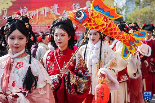12月31日拍摄的年货节汉服巡游展示。(新华社记者 徐昱 摄)