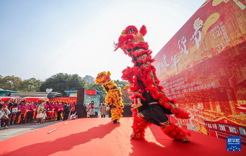 12月31日拍摄的年货节现场舞狮表演。(新华社记者 徐昱 摄)
