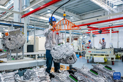 1月2日,工人在安徽省芜湖市繁昌经济开发区一家企业的生产线上生产新能源汽车变速箱。(新华社发 肖本祥 摄)