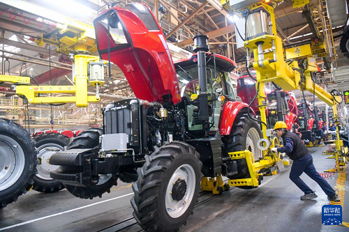 1月2日,工人在河南省洛阳市一家拖拉机生产企业车间工作。(新华社发 张怡熙 摄)