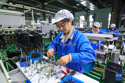 1月2日,工人在河南省信阳市光山县新宝汽车电器有限公司生产汽车配件。(新华社发 谢万柏 摄)
