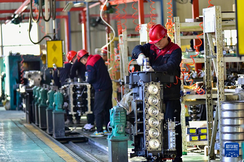 1月2日,工人在山东省青州市何官镇一家发动机制造企业的车间内工作。(新华社发 王继林 摄)
