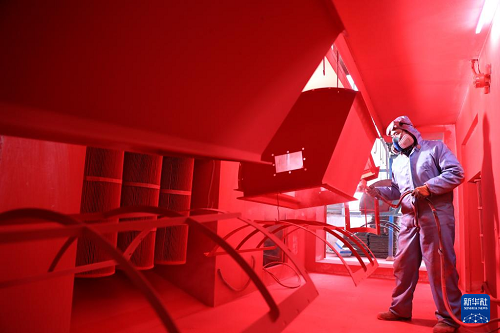 1月2日,河南省焦作市温县经济开发区一家企业的工人在进行喷塑作业。(新华社发 徐宏星 摄)