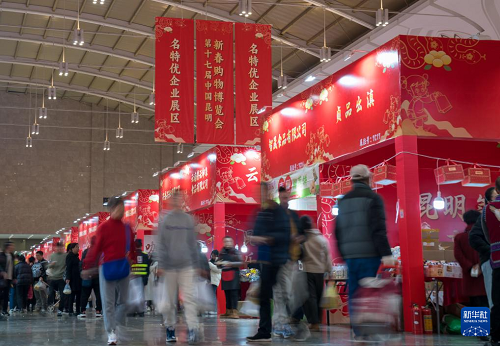 1月14日,顾客在昆明滇池国际会展中心购买年货。(新华社发 彭奕凯 摄)