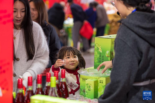 1月14日,小朋友在昆明滇池国际会展中心品尝饮料。(新华社发 彭奕凯 摄)