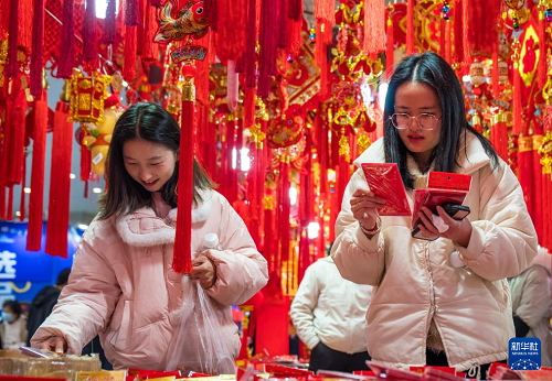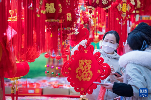 1月14日,顾客在昆明滇池国际会展中心挑选新春饰品。(新华社发 彭奕凯 摄)