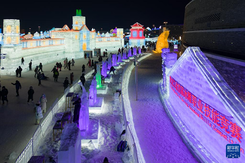 1月15日,黑龙江省首届冰雕职业技能竞赛在哈尔滨冰雪大世界正式开赛,18支代表队的50多位冰雕选手冰城秀技,吸引众多游客关注。