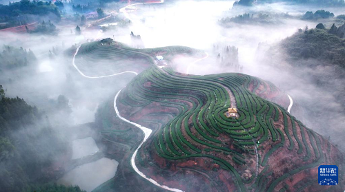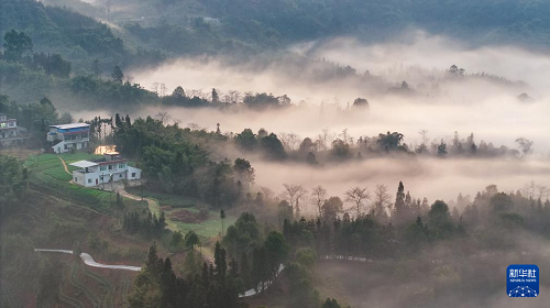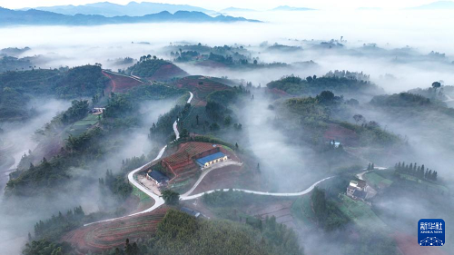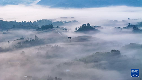 四川省泸州市纳溪区大渡口镇凤凰湖村晨雾弥漫,宛若仙境(1月19日摄,无人机照片)。(新华社发 刘学懿 摄)