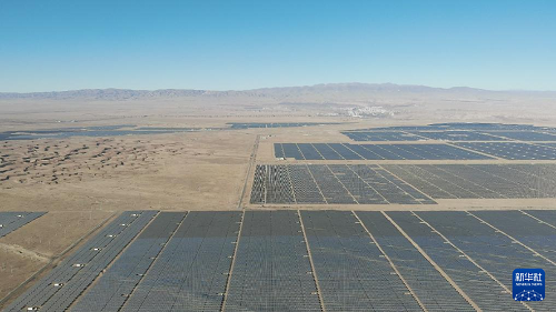 这是1月15日在青海省海南藏族自治州共和县塔拉滩绿色产业发展园区拍摄的光伏电站(无人机照片)。(新华社记者 解统强 摄)