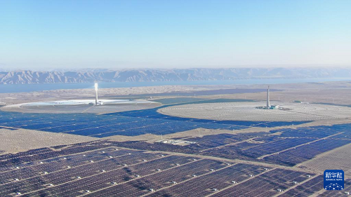 这是1月15日在青海省海南藏族自治州共和县塔拉滩绿色产业发展园区拍摄的光伏电站(无人机照片)。(新华社记者 王梓涵 摄)