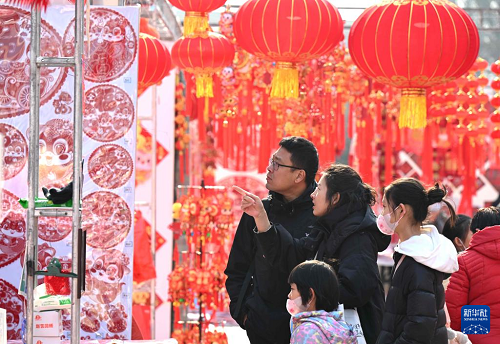 1月23日,市民在河北省石家庄市长安区一家年货集市选购新年饰品。(新华社发 陈其保 摄)