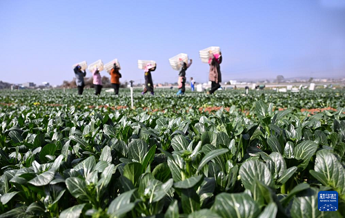 1月25日,在云南省曲靖市陆良县芳华镇龙潭社区露天蔬菜种植基地,菜农采收新鲜蔬菜。(新华社发 王勇 摄)