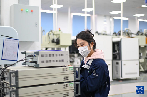 2月5日,江苏省昆山高新区通友智能装备有限公司工人在微型电感生产线上作业。(新华社发 王须中 摄)