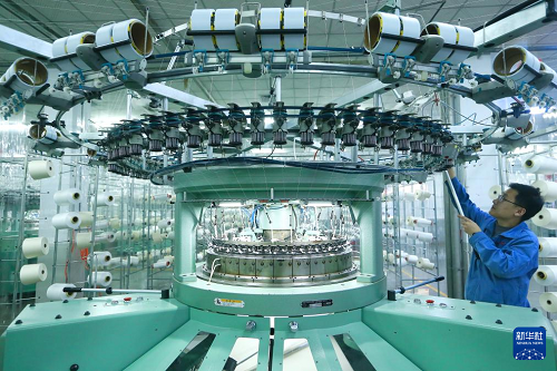 2月7日,山东省青岛市即墨区颐和针织有限公司工人在生产出口到海外市场的服装面料产品。(新华社发 梁孝鹏 摄)