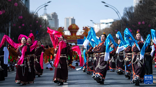 2月7日,青海省西宁市举办社火集中巡游活动,来自50余支团队的2000多名演员参加巡游表演,为市民群众带来一场节日文化盛宴。