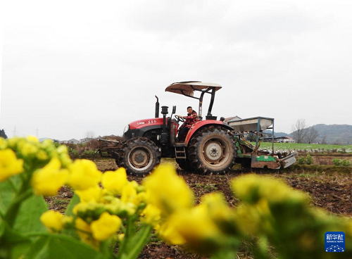 2月7日,在四川省达州市渠县临巴镇四面村,村民驾驶农机翻田准备播种玉米。(新华社发 邓良奎 摄)