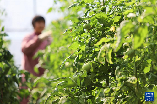 2月17日,河北省石家庄晋州市周家庄乡农民在大棚内管护西红柿。(新华社发 梁子栋 摄)